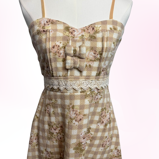 Japanese Brand 'Lizmelo' by Liz Lisa Yellow Beige Gingham Floral Dress [NWT]