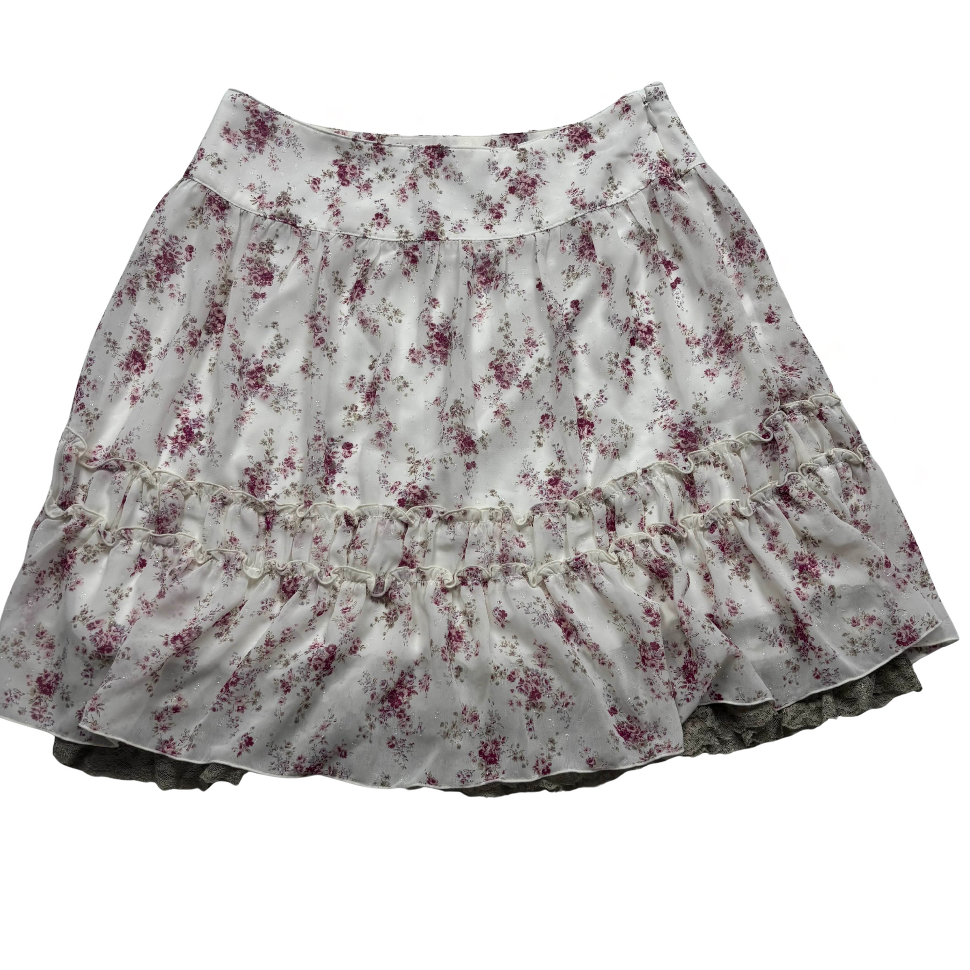 Japanese Brand L'est Rose Cream Floral Print Sparkly Skirt [Secondhand]