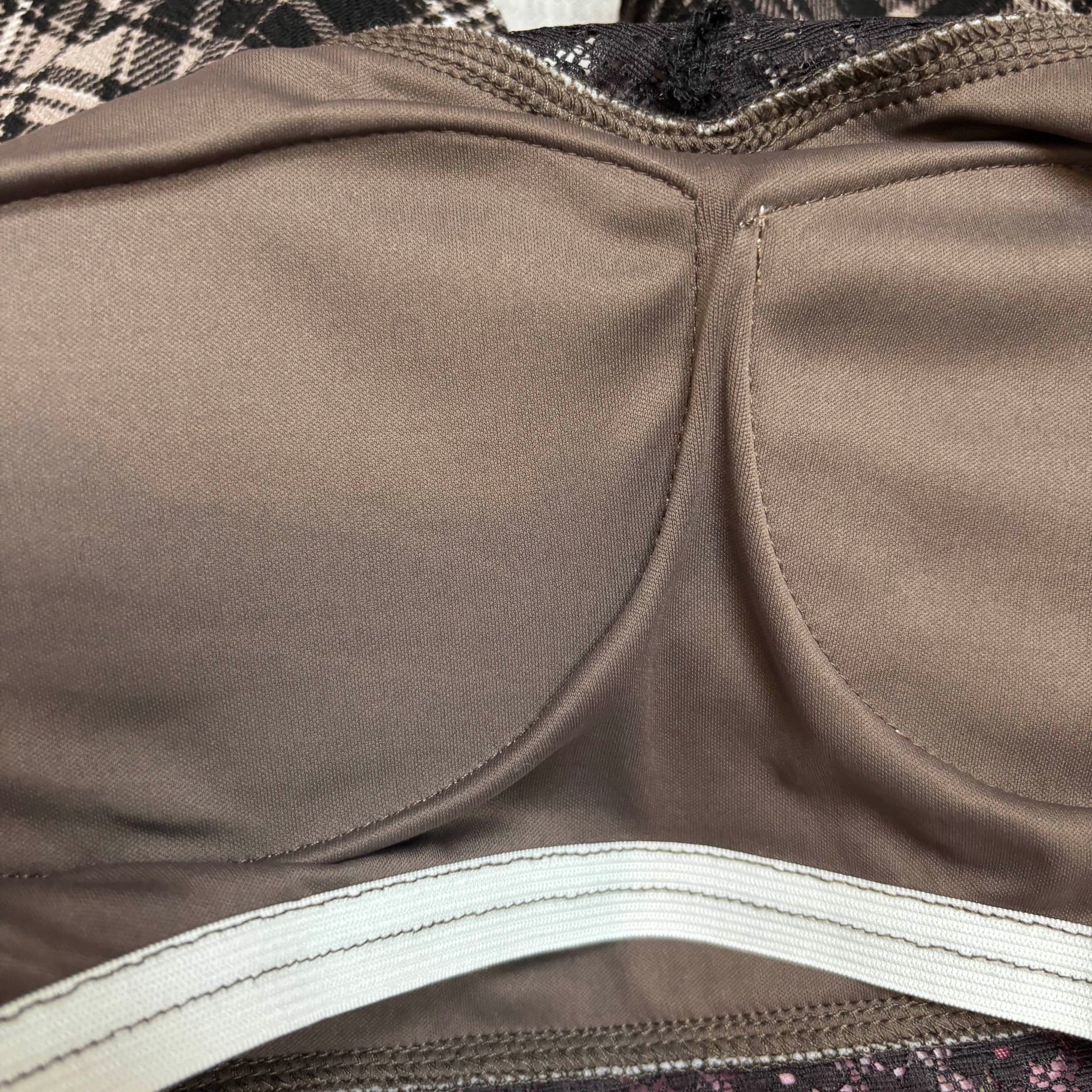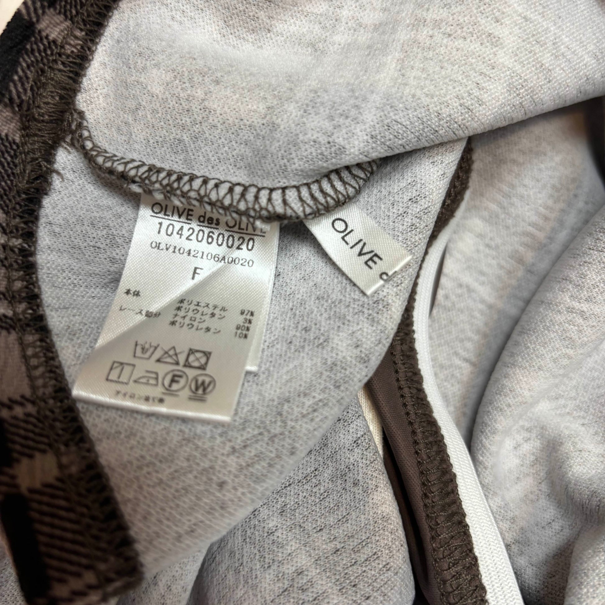 ❥ An adorable cami tank top that features a greyish brownish muted color alongside black plaid pattern. It has black lace detailing and dark brown bows on the shoulders traps. The inside has cups/padding.