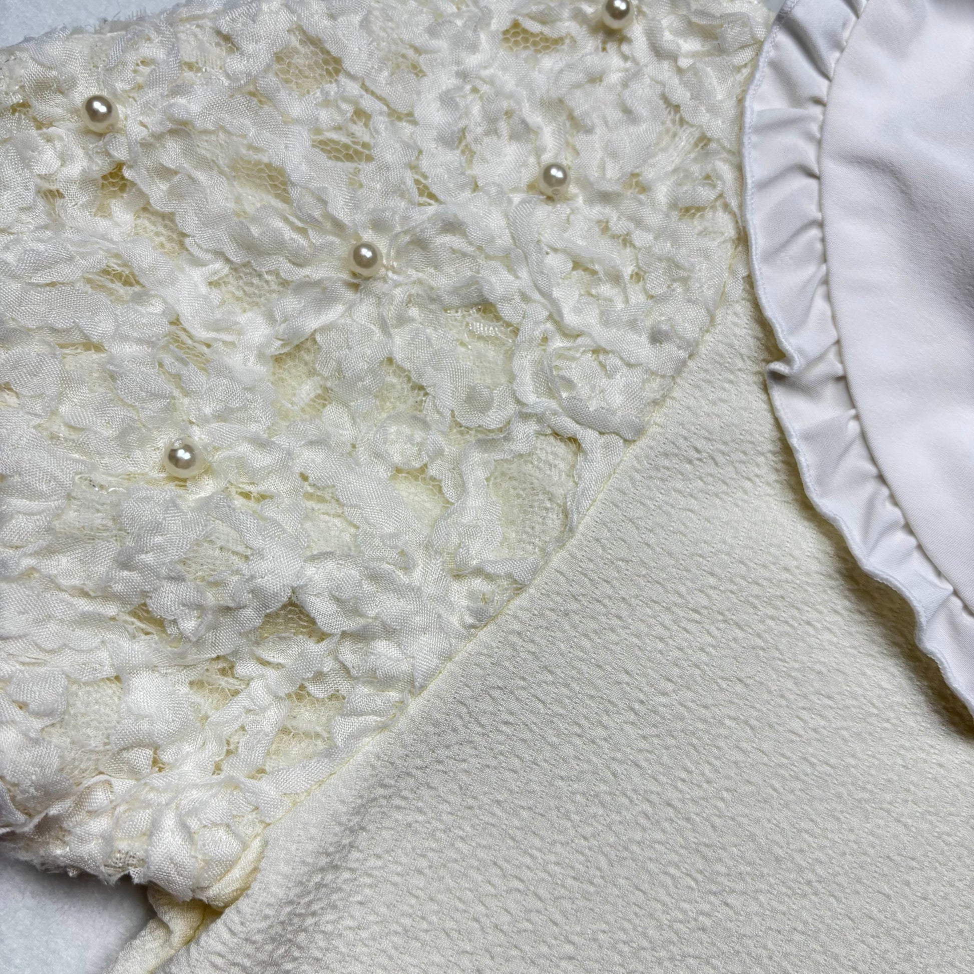❥ An adorable cream colored blouse. The sleeves have floral lace detailing and pearls on them. It has a white ruffle collar. Penderie is a sister brand to Liz Lisa ^-^