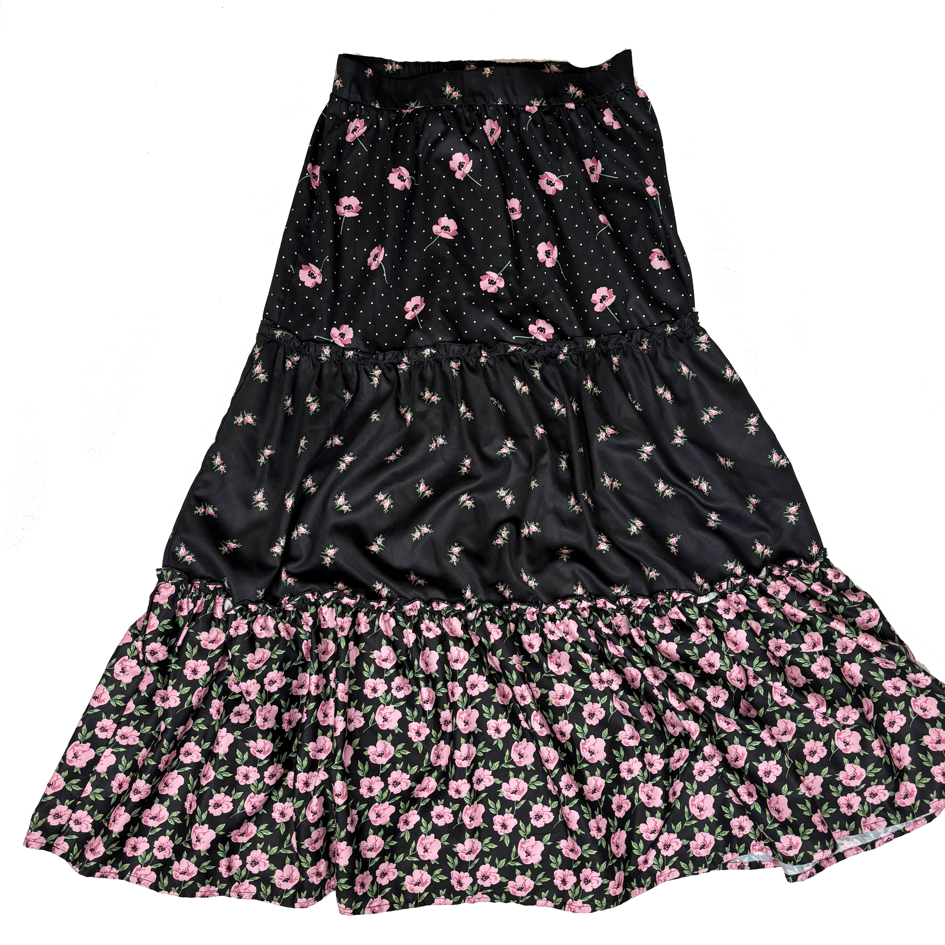 ❥ Japanese Brand Titty&Co. Black and Pink Floral Pint Maxi Skirt